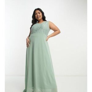 Vila Curve – Bridesmaid – Maxi-Brautjungfernkleid in Salbeigrün mit Spitzenbesatz am Oberteil