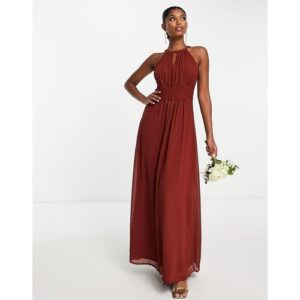 Vila – Bridesmaid – Maxi-Brautjungfernkleid in Rot mit Neckholder-Träger